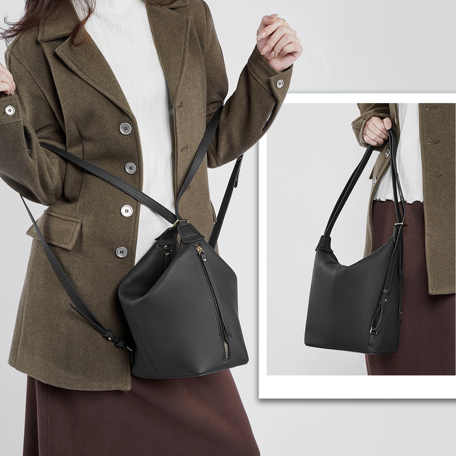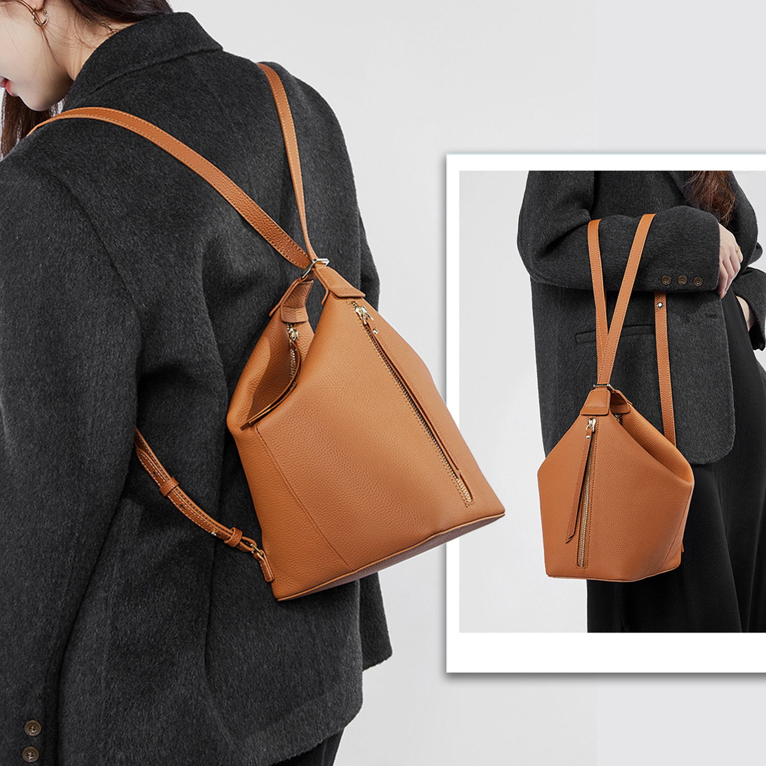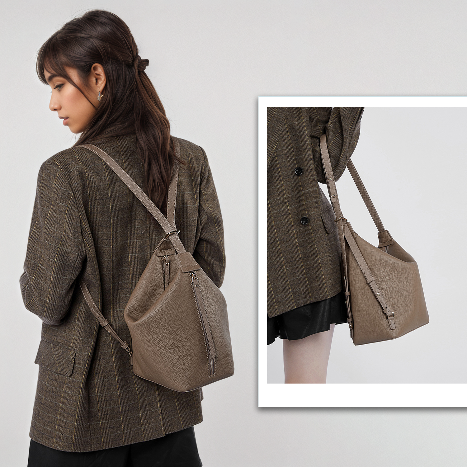 Xpurse Women's Shoulder Bag, Leather Backpack, Vintage Tote Bag in Cowhide Leather on the Top, Adjustable Closure Bag