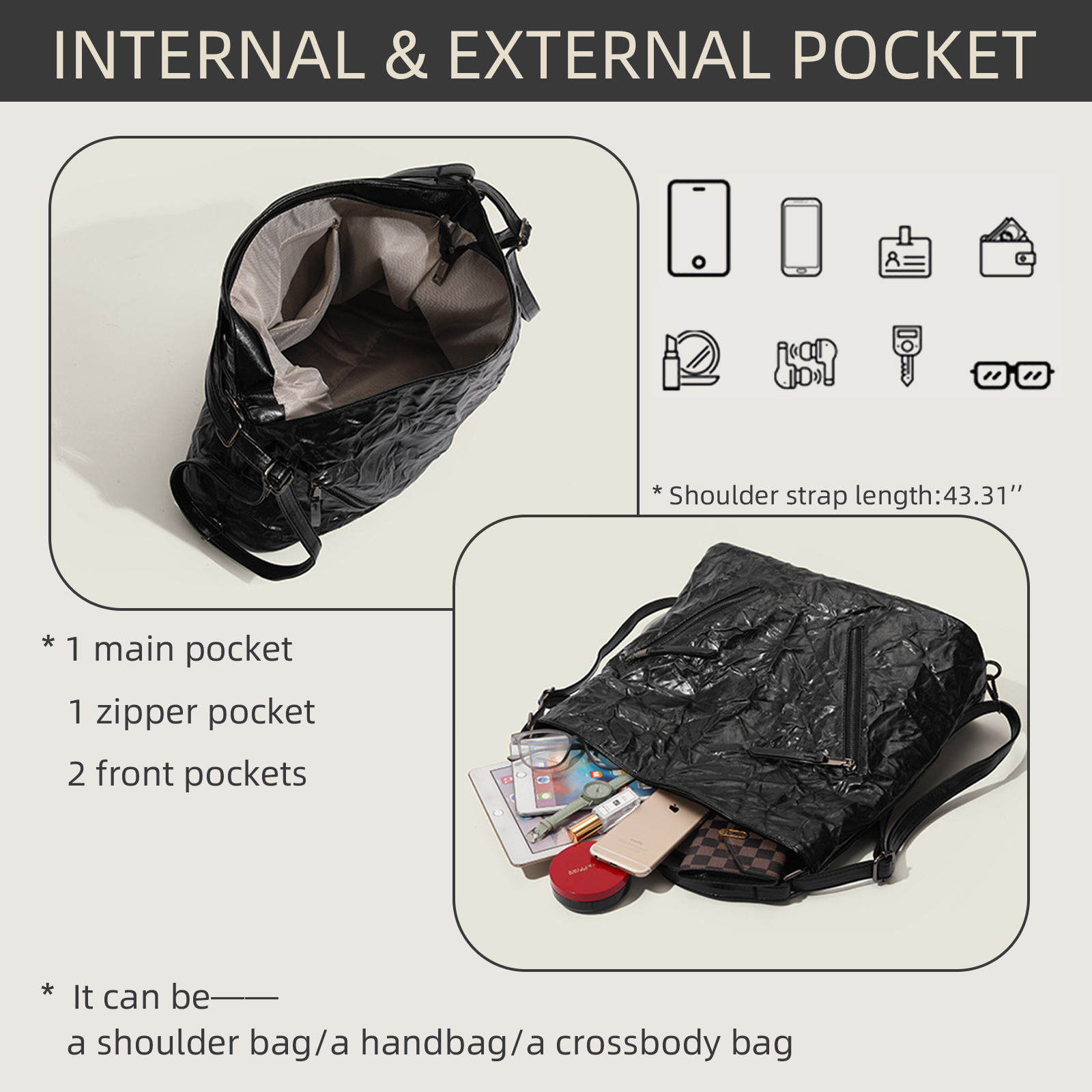 【Elegant Ladies Handbag】Classic shape, comfortable PU material, simple lines, high-quality hardware, and simple design. With large pockets and adjustable shoulder straps, it is lightweight and stress-relieving, suitable for work, travel, and daily life.