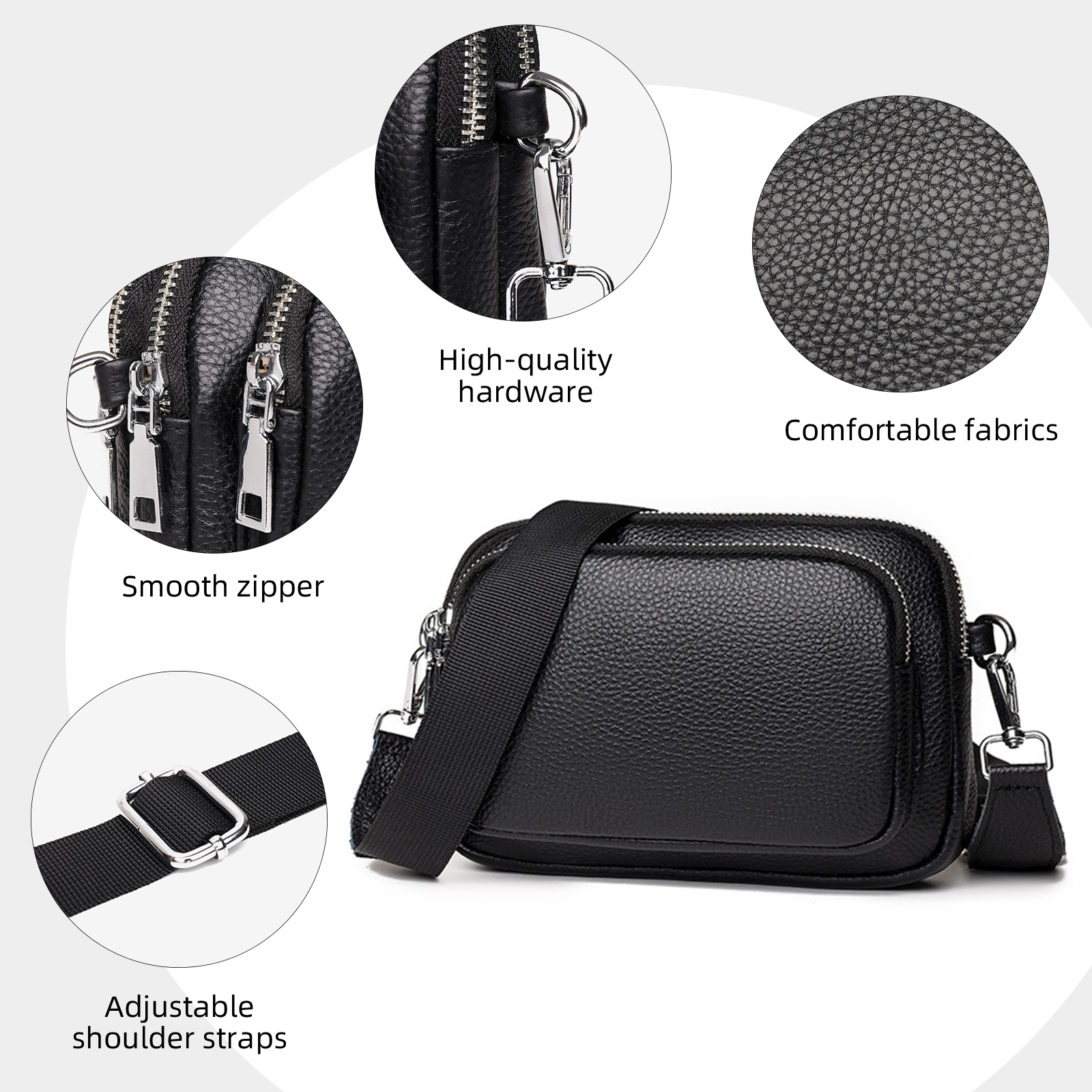 【Large Capacity Travel Crossbody Bag】Considerably consider your daily and travel storage items, there are 3 pockets:1 main pocket, 1 auxiliary pocket, 1 front pocket. Practical structure to keep your belongings organized and easy to use.