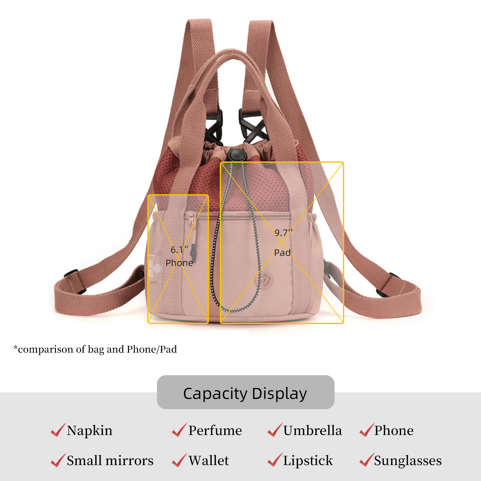 【Comfort Pocket】(L)7.48" x (W)3.94" x (H)8.27", Weight: 0.57 lbs.