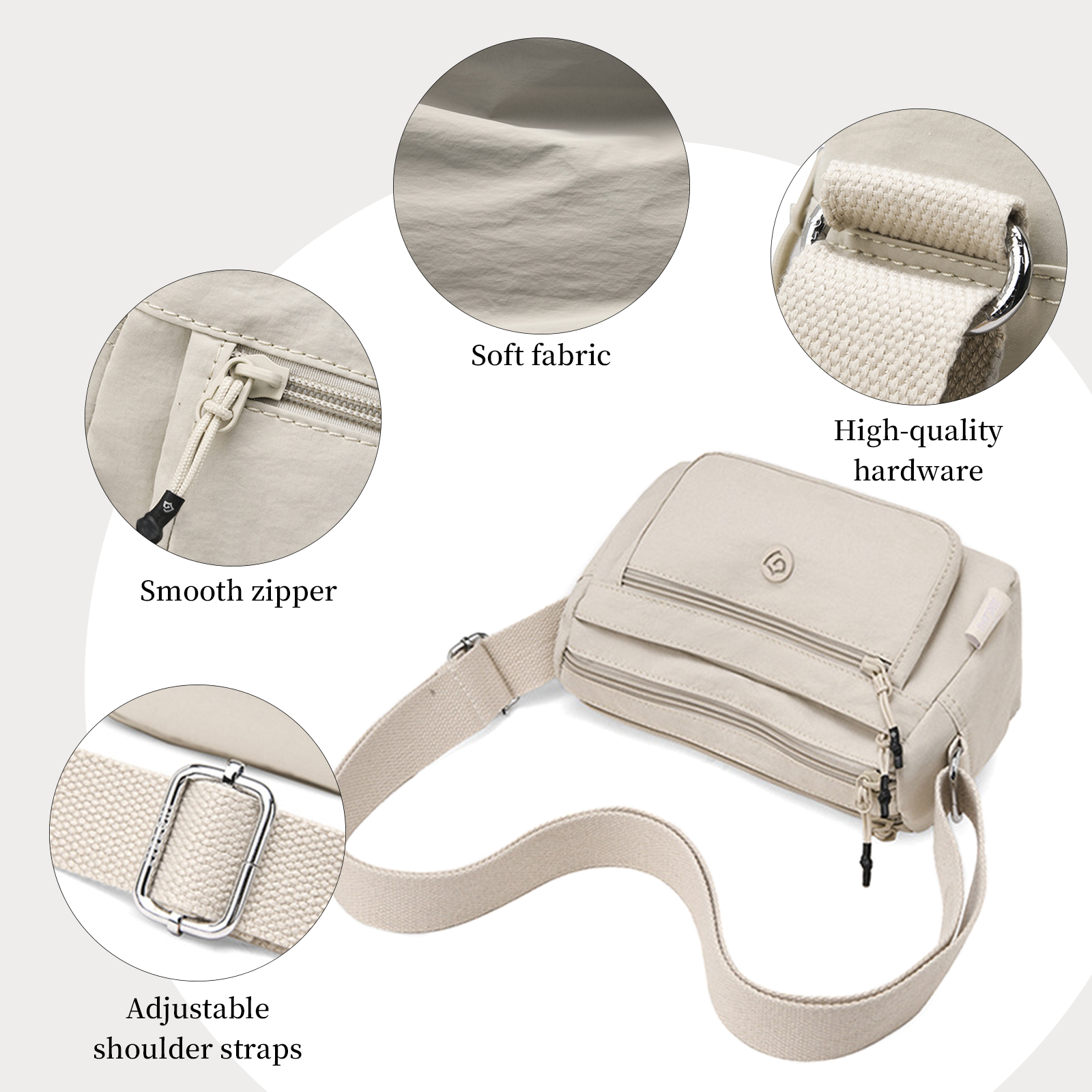【Large Capacity Travel Crossbody Bag】Considerably consider your daily and travel storage items, there are 6 pockets:1 main pocket, 1 front pocket, 1 back pocket, 2 auxiliary pockets, 1 zipper pocket. Practical structure to keep your belongings organized and easy to use.