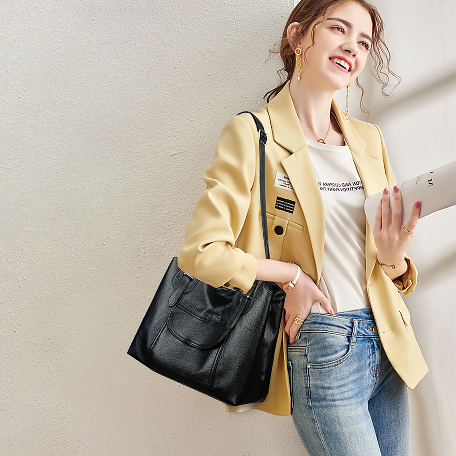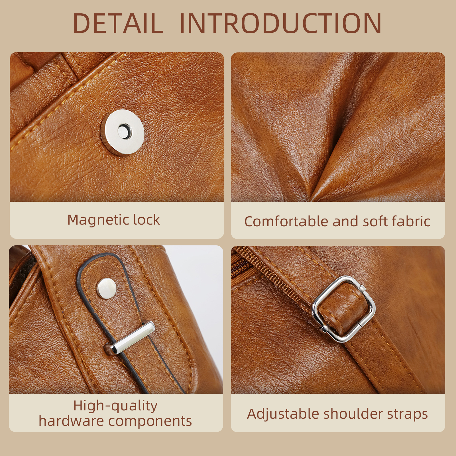 【Elegant Ladies Handbag】Classic shape, comfortable PU material, simple lines, high-quality hardware, and simple design. With large pockets and adjustable shoulder straps, it is lightweight and stress-relieving, suitable for work, travel, and daily life.