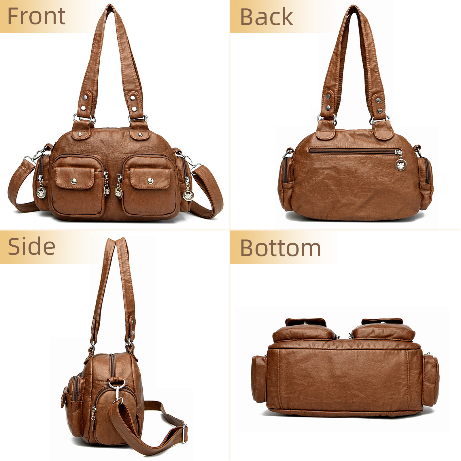 【High Quality Materials】Our handbags are made of high-quality PU fabric, which is thick and comfortable, wrinkle-resistant and wear-resistant, waterproof, odorless, and easy to clean. Hardware-reinforced for durability, and smooth zippered pockets ensure you can access things quickly.