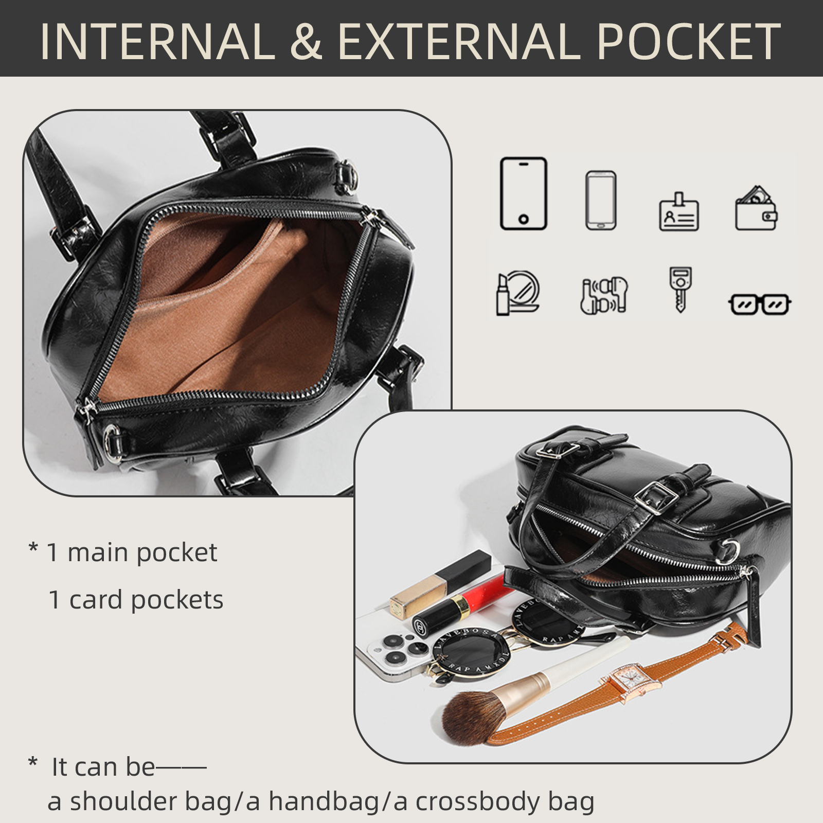 【Large Capacity Travel Crossbody Bag】Considerably consider your daily and travel storage items, there are 6 pockets:1 main pocket, 2 side pockets, 2 front pockets, 1 back pocket. Practical structure to keep your belongings organized and easy to use.