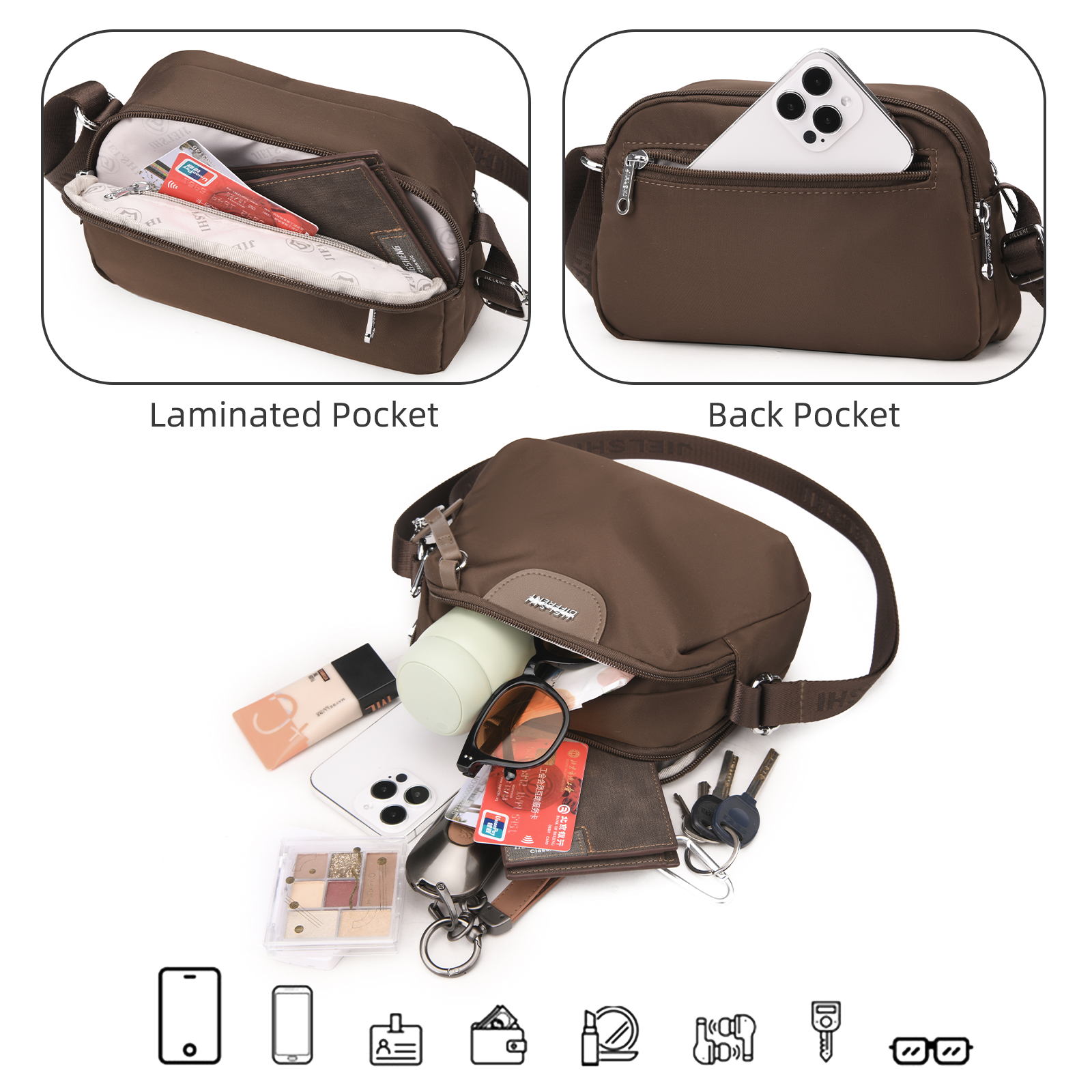 【Large Capacity Travel Crossbody Bag】Considerably consider your daily and travel storage items, there are 4 pockets:2 main pockets, 1 zipper pocket, 1 back pocket. Practical structure to keep your belongings organized and easy to use.