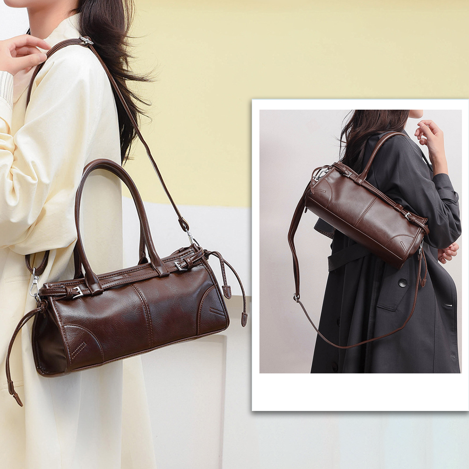 【Elegant Ladies Handbag】Classic shape, comfortable PU material, simple lines, high-quality hardware, and simple design. With large pockets and adjustable shoulder straps, it is lightweight and stress-relieving, suitable for work, travel, and daily life.