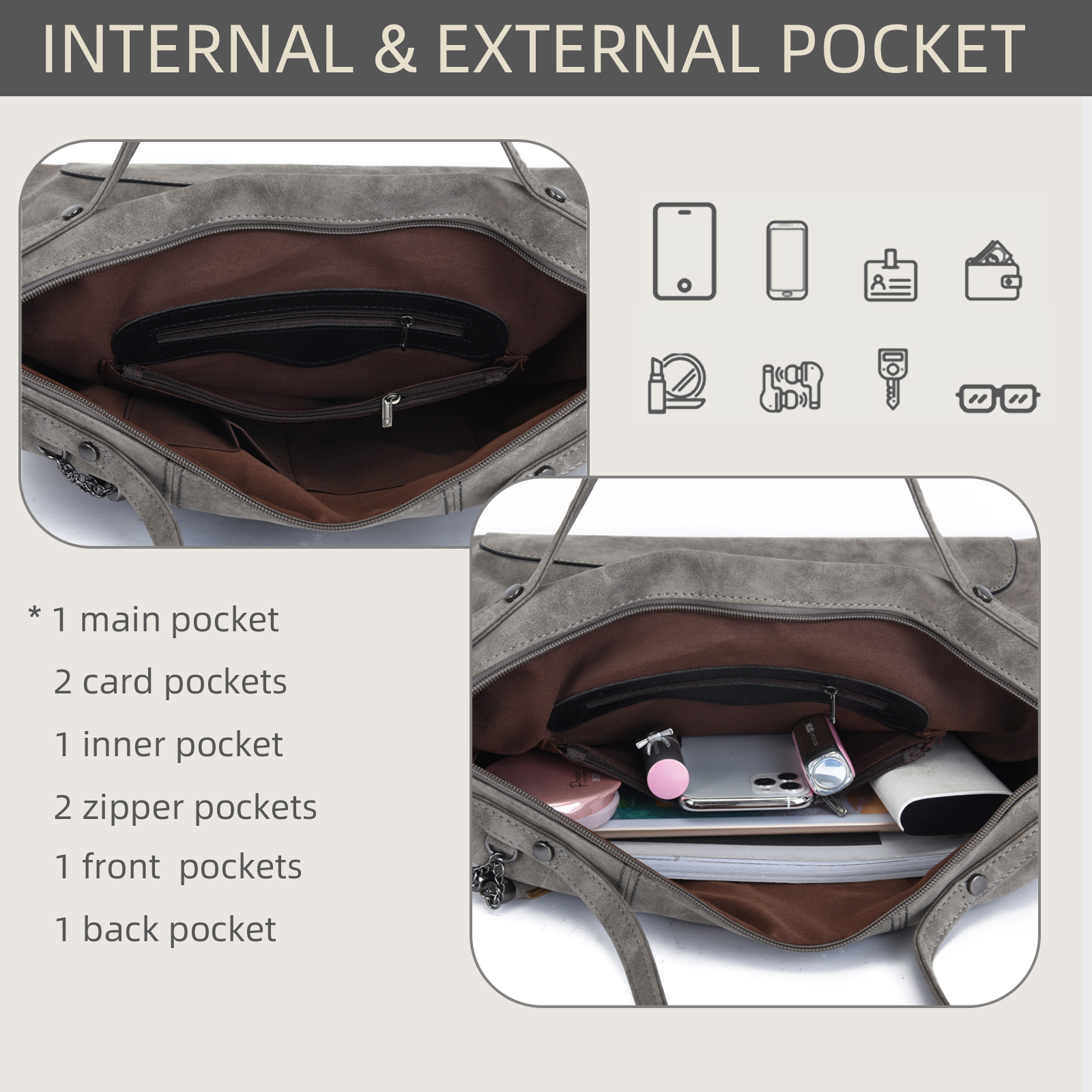 【High Quality Materials】Our handbags are made of high-quality PU fabric, which is thick and comfortable, wrinkle-resistant and wear-resistant, waterproof, odorless, and easy to clean. Hardware-reinforced for durability, and smooth zipper pockets ensure you can access things quickly.